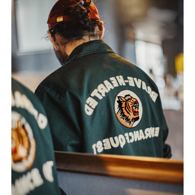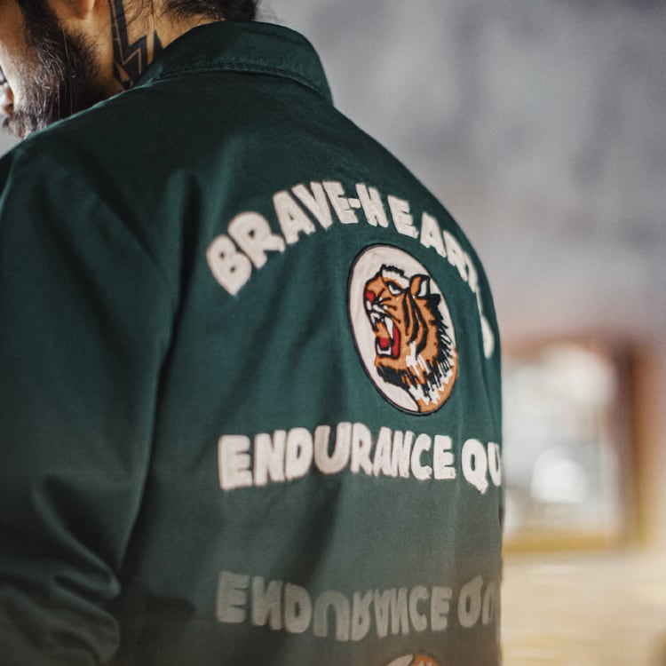 落ち着いた色合いのボディに映える、さりげない刺繍ロゴがポイントです。
