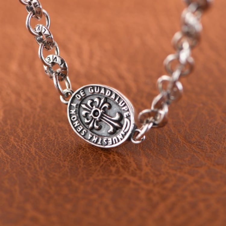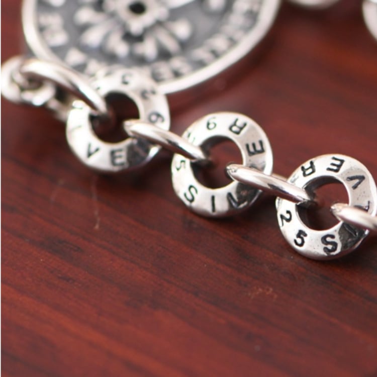 オーバル型のモチーフに施された繊細なデザインが特徴的なブレスレット。
