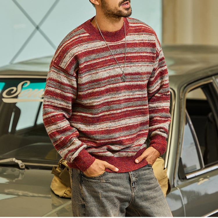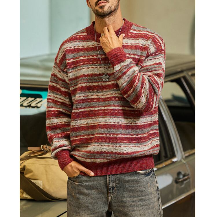 落ち着いた色合いのボーダーが、大人の余裕を感じさせる一枚です。