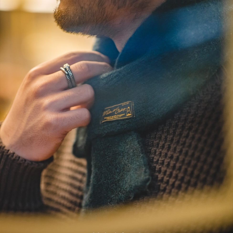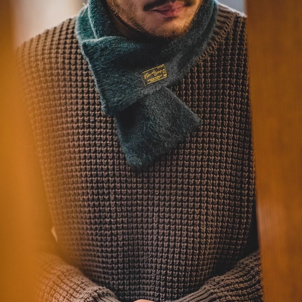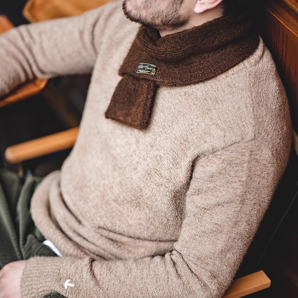 首元を温かく包み込み、シンプルながらも存在感のあるデザインは、様々なスタイルに合わせやすく、デイリーユースにぴったりです。