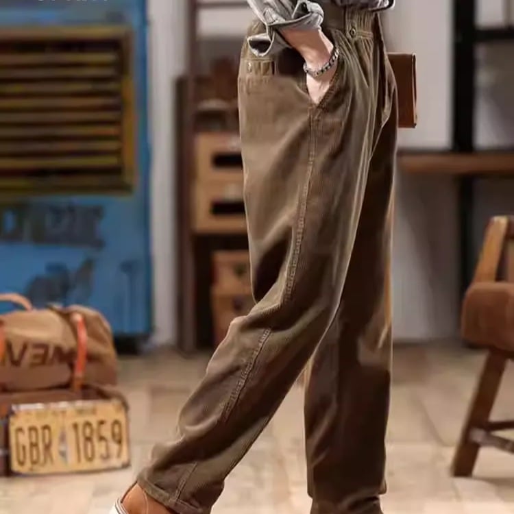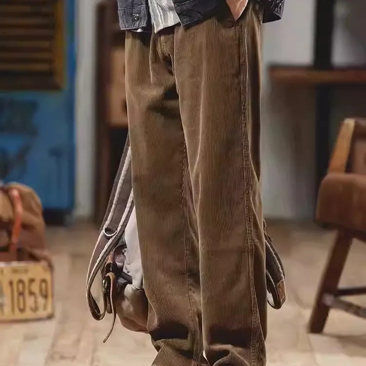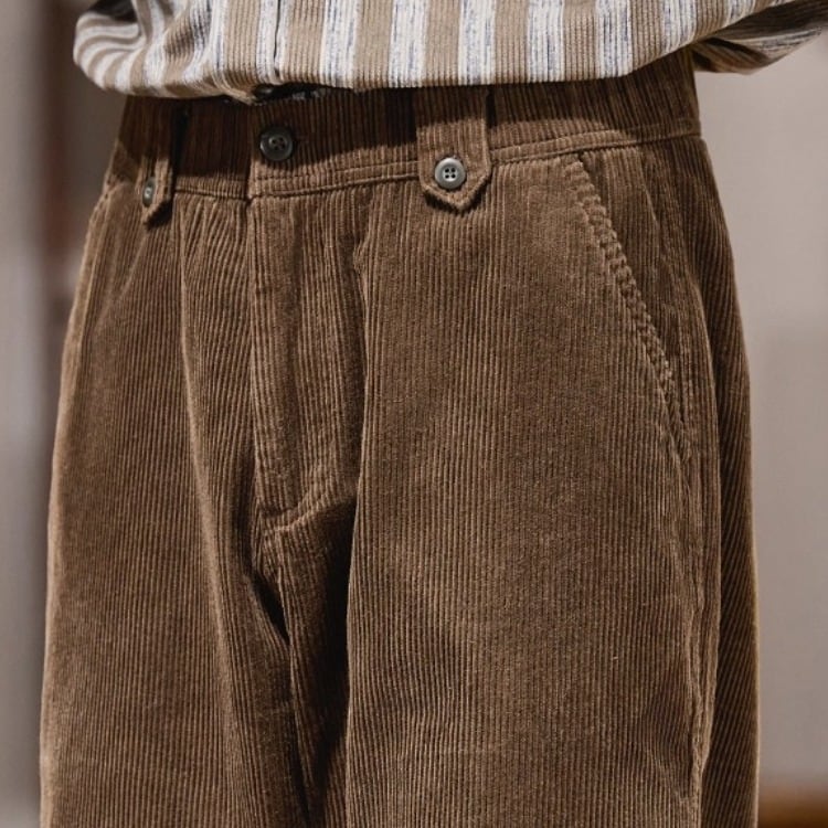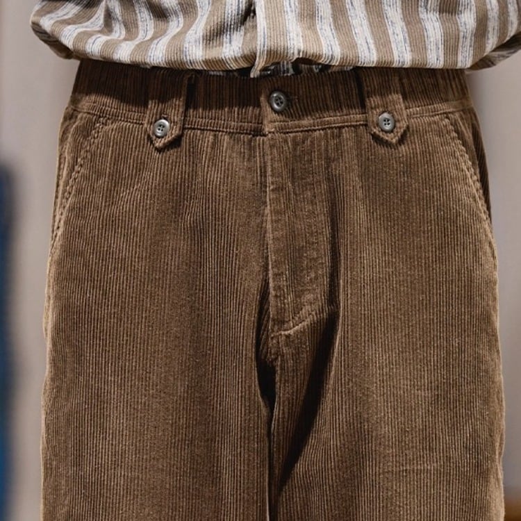 ワークテイスト漂うコーデュロイワイドレッグストレートパンツが登場!