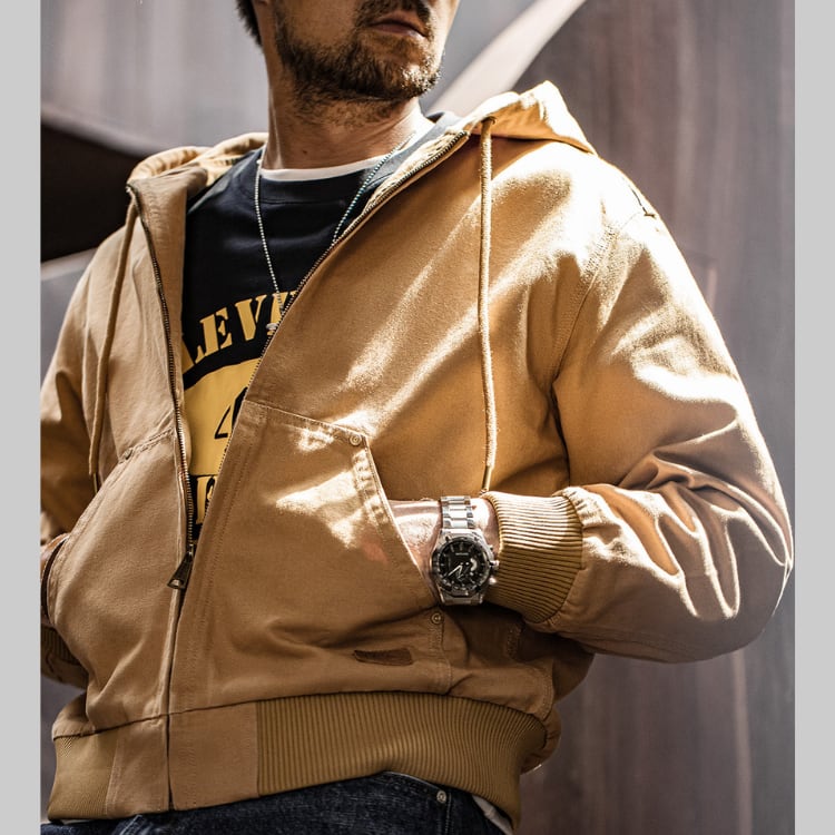 ワークジャケットをベースに、フード付きデザインでアップデートされたアイテムが登場!