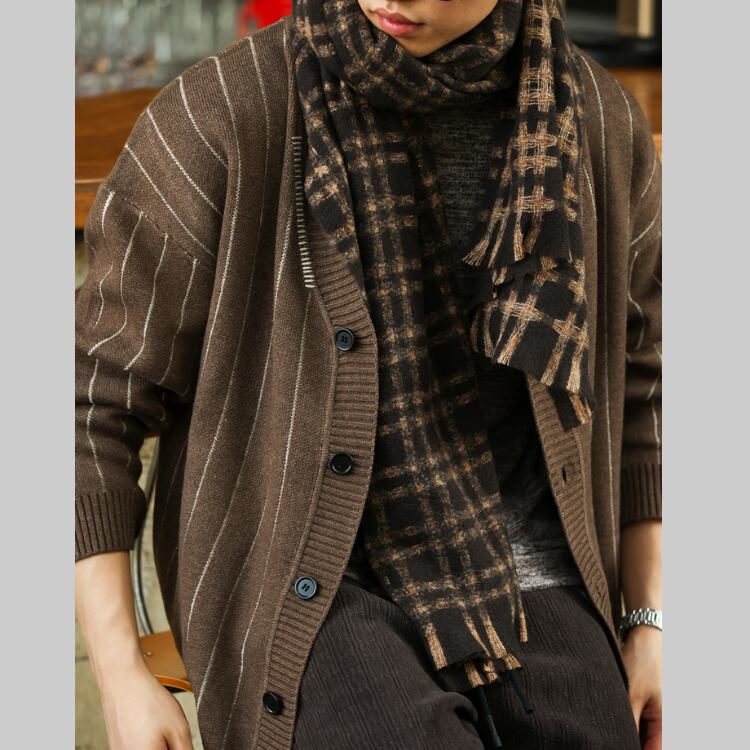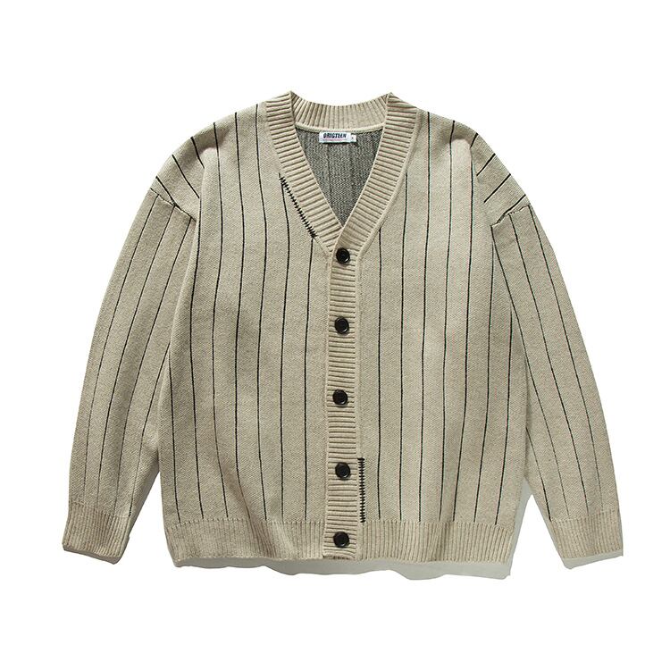 ストライプのVネックカーディガンで、大人の余裕を演出!
