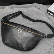 フェイクレザーのボディバッグはコーディネートのスパイスにも。