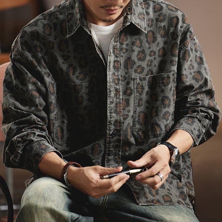 存在感のあるレオパード柄を落とし込んだミリタリーシャツジャケット。