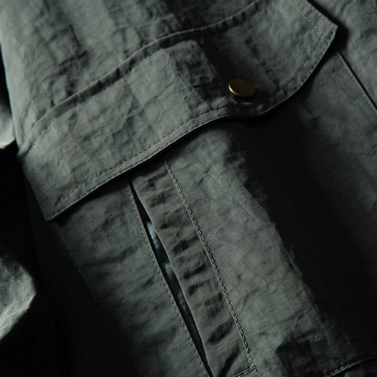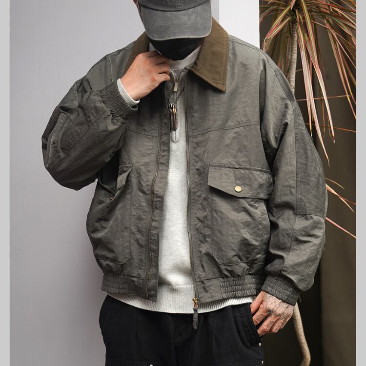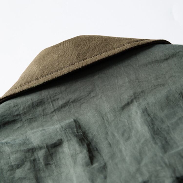 渋いカラーと大き目シルエットが羽織るだけでコーデを武骨にしてくれる。