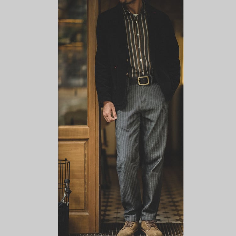 テーパードタイプのヘリンボーンジーンズはカジュアルすぎずキレイめすぎず、いろんなシーンに使いやすいアイテムです。