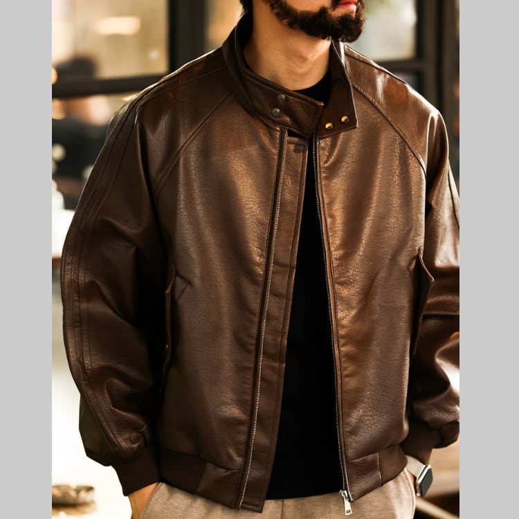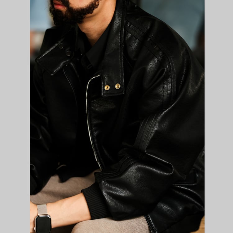 オーバーサイズ フェイクレザージャケット 2色 G00187
