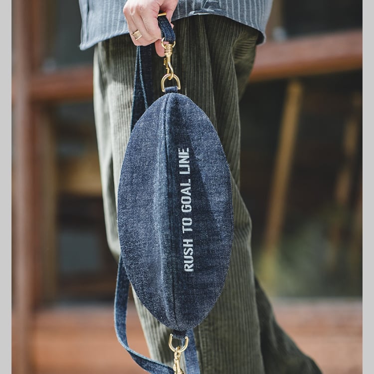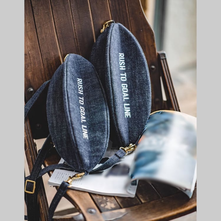 カジュアルなデニム素材を使用したショルダーバッグ。