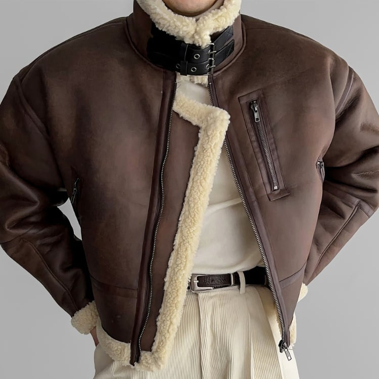 無骨な雰囲気が魅力のフェイクレザージャケット。