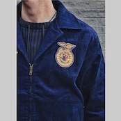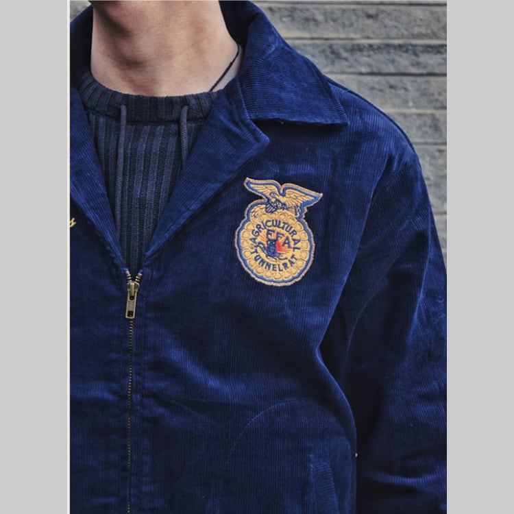 背面に大胆なロゴ刺繍を施した、存在感抜群のジャケット。