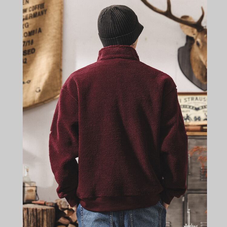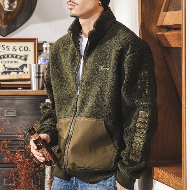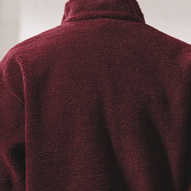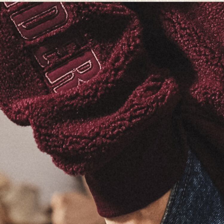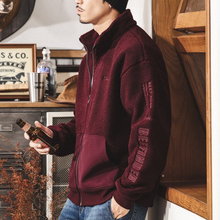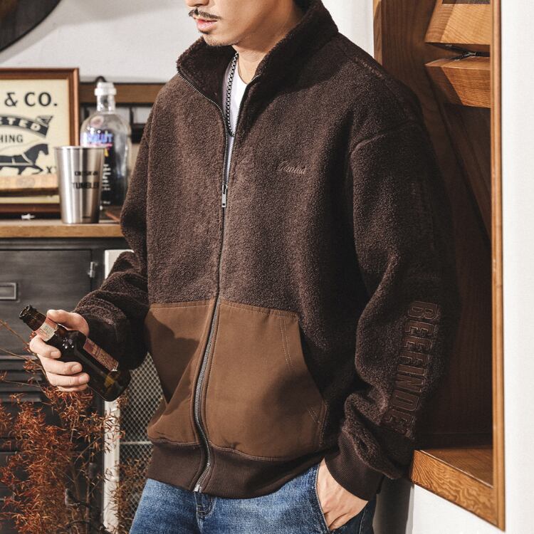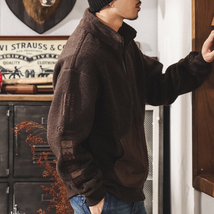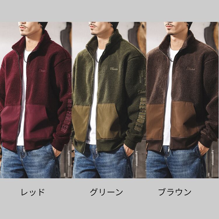 ボア素材と異素材の切り替えが特徴的なジップアップジャケット。