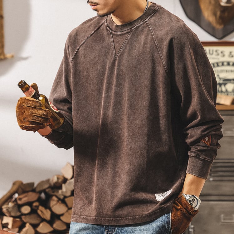 ゆったりとしたシルエットでリラックス感漂う長袖スウェットシャツ。