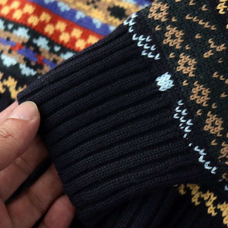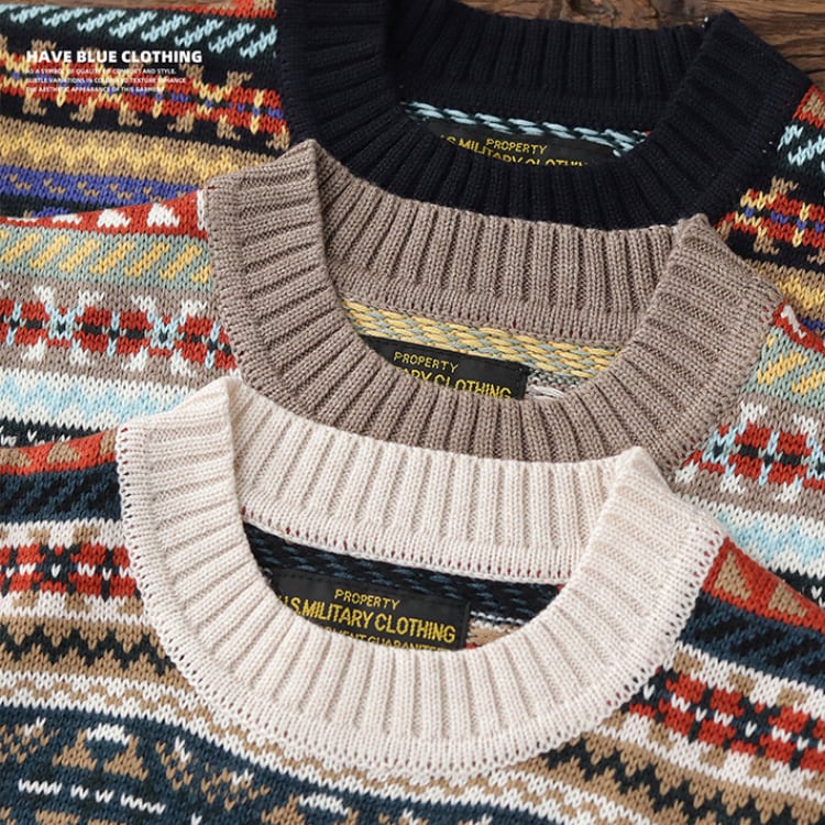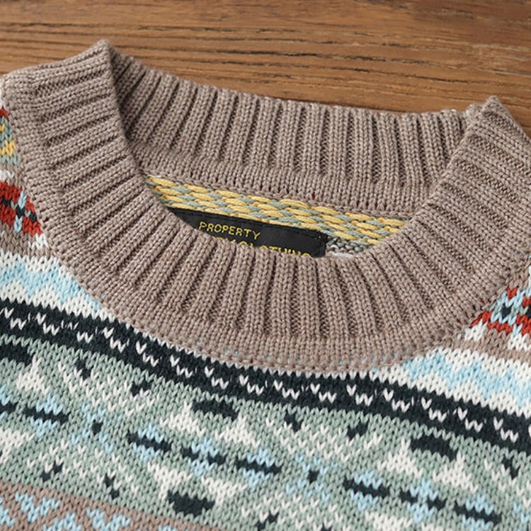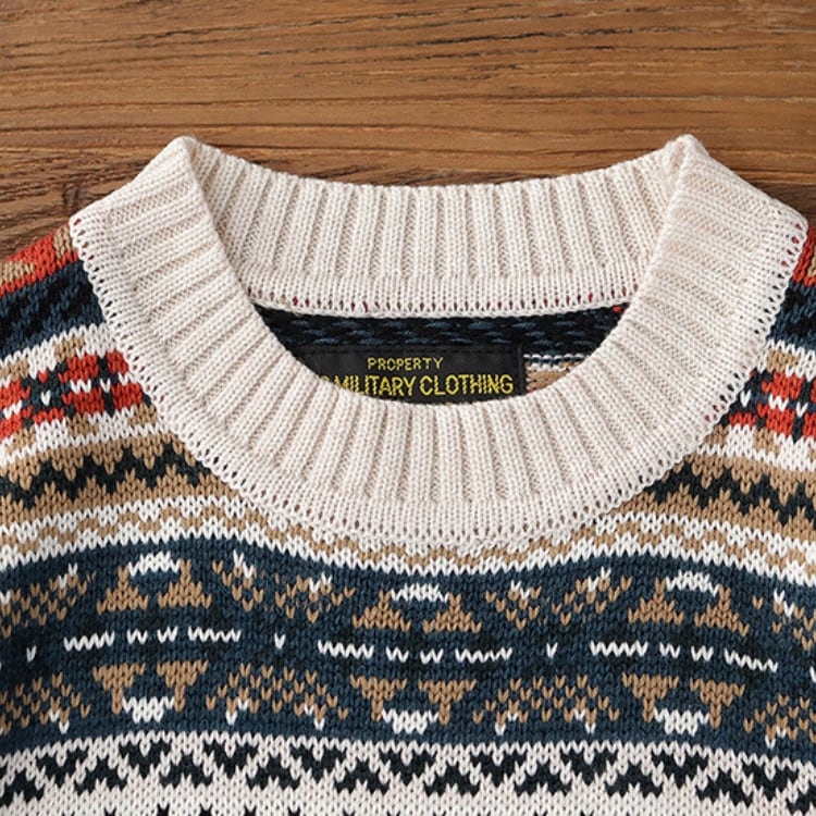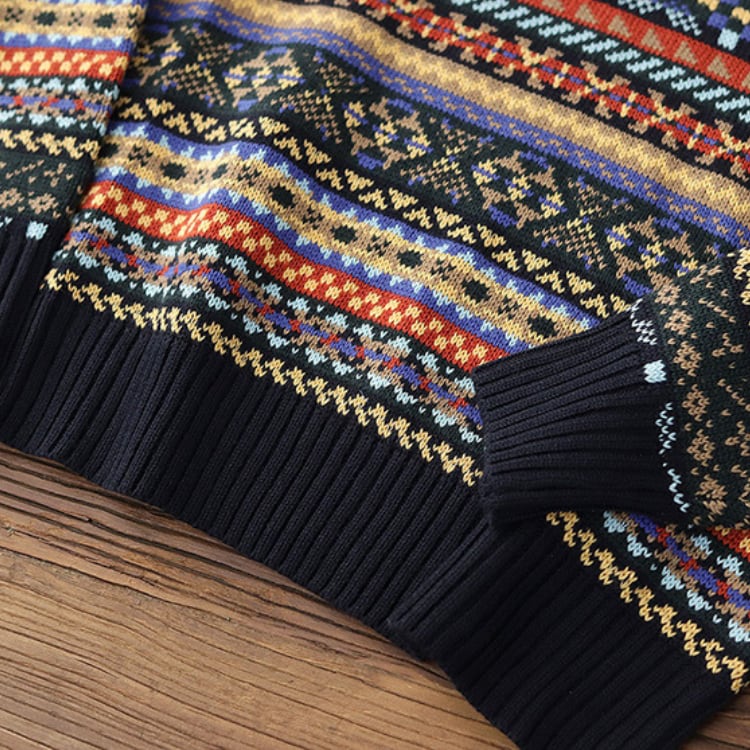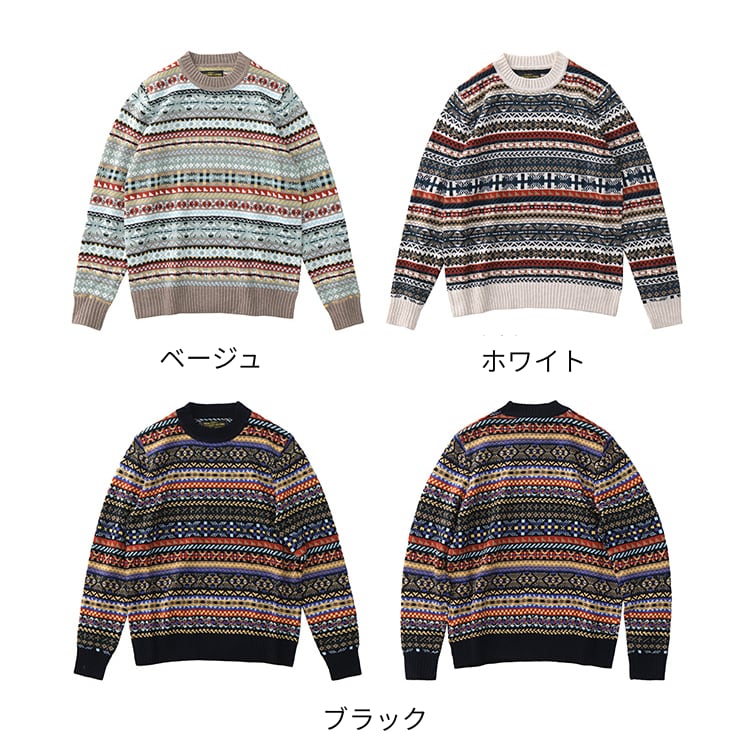 特徴的なフェアアイル柄が目を引く厚手のニット。