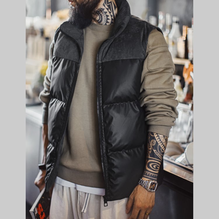 Tシャツやシャツの上にはもちろん、ジャケットの上にも羽織れる。