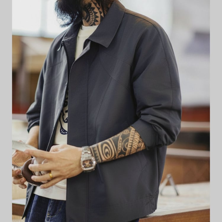 肩のラインを落とした、ゆったりシルエットのワークウェアジャケット。