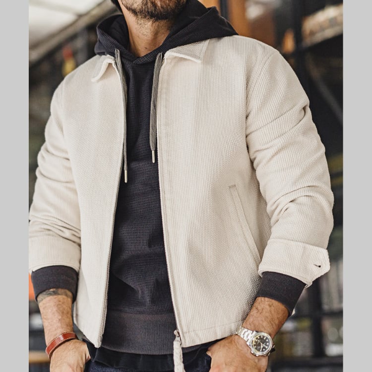 ジップアップで気軽に羽織れる腰丈ジャケット。